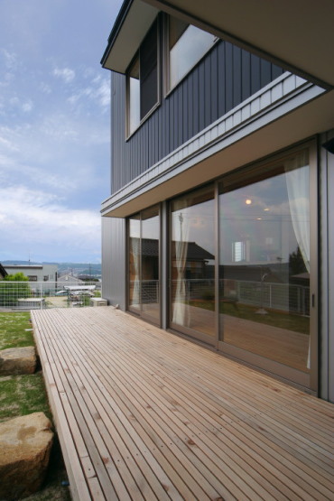 | 恵那山の麓にある眺めの良い高台に建つ家です。1階のリビングとは別に2階に家族専用のプライベートなファミリールームを持つ家で、ルーフテラスからは岐阜の山々を眺める素晴らしい眺望が望めます。ダイニング上部の吹抜を通して1階の温水式の床暖房の暖かい空気が2階まで届き、家中を暖めます。 |